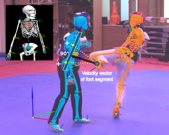 Results: The medio-lateral linear velocity of the foot segment was significantly higher in successful kicks (p < .05). Additionally, the sagittal-plane attack angle of the foot segment velocity vector significantly predicted scoring success (p < .05).